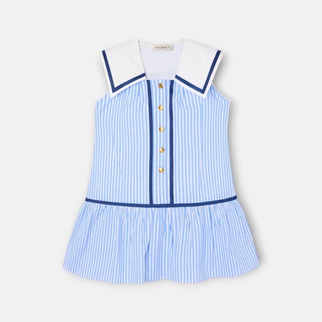 Vestido Girl Marinero Rayas Azules Silbon