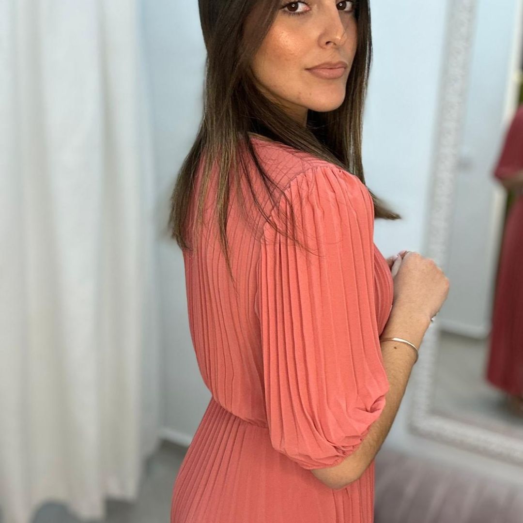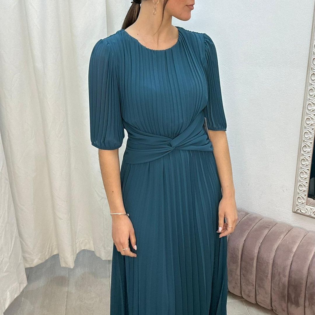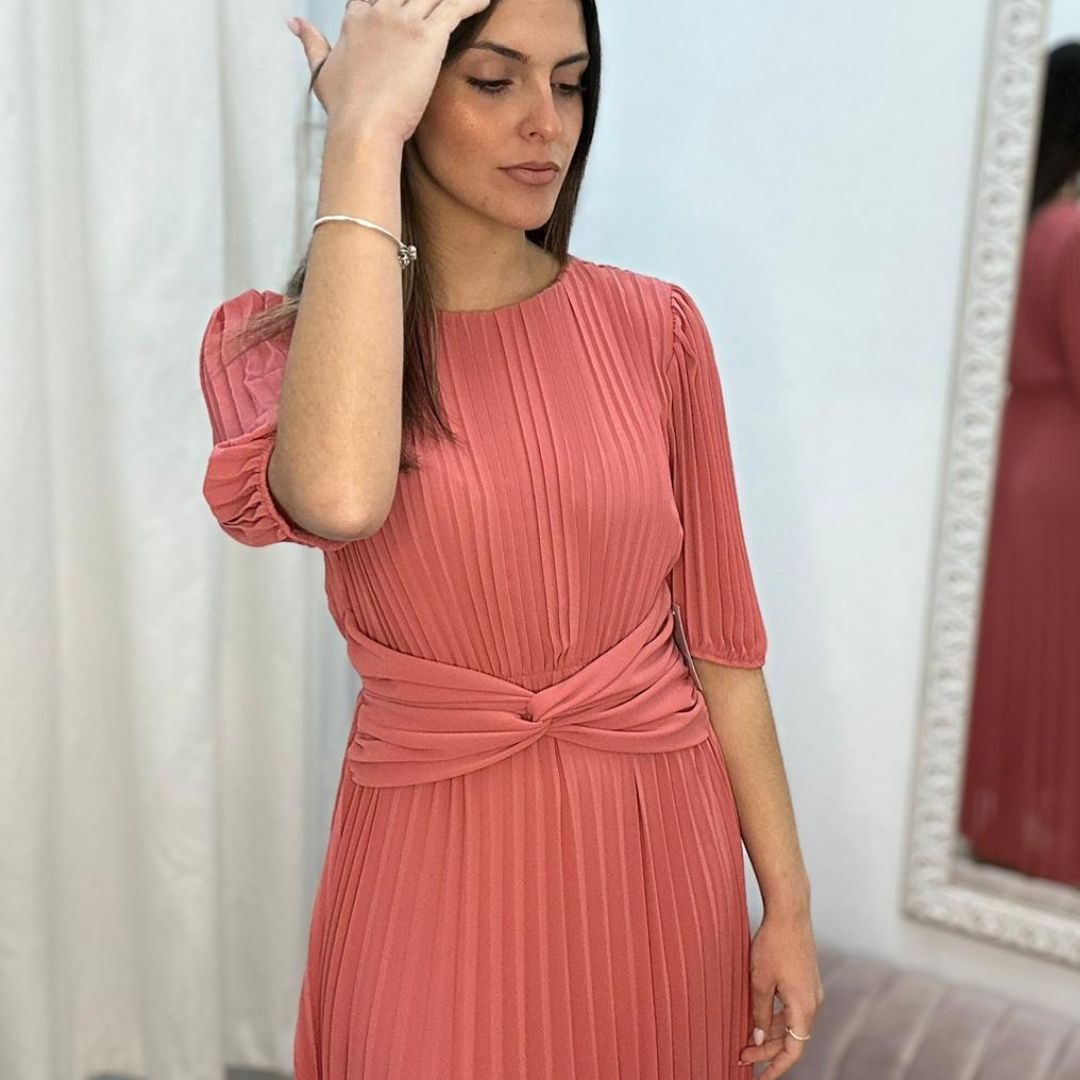 La elegancia se une a la comodidad en nuestro vestido midi de tejido plisado, una prenda diseñada para brillar en cualquier ocasión especial. Su textura fluida y su diseño cuidadosamente estructurado lo convierten en el aliado perfecto para quienes buscan un look sofisticado y favorecedor.